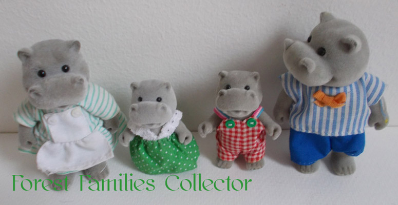 The Hippo Family consists of the basic parents and children set. They are light grey with white teeth.